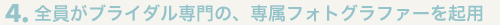 ブライダル専門の研修を重ね、知識と経験豊かなフォトグラファーが担当!